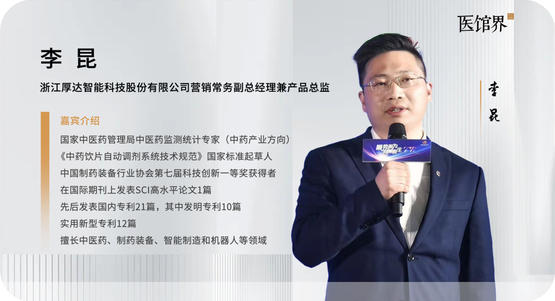 ![]() 通过扫描医馆公众号二维码,屏幕上即刻展开一幅 “中药诞生全景图”——从中药饮片种植源头到煎制完成的全流程数据,其中包括调剂的过程、调剂的精度、照片、煎药的温度曲线…… 这一幕并非未来场景,而是每天发生在全国2000多家医疗机构、服务的20万+患者的真实日常—— 浙江厚达智能科技股份有限公司打造的智慧共享中药房,正用“透明化”服务重新定义中医药的“最后一公里”。 中医药是中华文明的瑰宝,然而传统中药房长期依赖的“人工作业”模式,效率低下且易出错:抓药时依赖人工称量,需逐味抓取,耗时耗力;煎药常用砂锅,缺乏标准化流程,药效难以稳定保障,更难以满足现代快节奏生活对便捷性的需求。 李昆坦言:“这样即便有好医生开出优质中医处方,配以品质上乘的中药饮片,若煎药环节失误、药事服务能力不足,最终也会违背‘好医好药’的初衷。”在他看来,目前传统中药房正面临着三重挑战: 人工抓药高度依赖药师经验,处理大规模处方时易出现剂量误差,据了解,某大型国医馆高峰期人工抓药失误概率也较高,并且劳动密集型模式下,药师状态、专业素质均影响抓药精度。 传统煎药机+人工操作模式下,像“先煎后下”“烊化烊冲” 等古法工艺难以精准执行,加水比例、浸泡时间、煎煮火候等关键参数也缺乏数据支撑,全凭操作人员经验判断,导致汤剂质量稳定性不足。例如,饮片浸泡是否充分、煎煮过程中火力控制是否符合方剂要求,这些直接影响药效的环节均存在操作不规范的风险。 从饮片种植加工到汤剂交付患者,全流程处于“黑箱”状态。患者无法验证饮片等级、追溯煎制过程,对药事服务的疑虑普遍存在。浙江等地推行的“最多跑一次”改革中,患者虽可享受便捷的送药上门服务,但对“黑箱”作业的不信任成为制约中医药普及的隐性障碍。 在此背景下,智慧共享中药房模式应运而生。正如李昆所言,这一模式并非简单的设备替换,而是通过“智能化设备替代人工实现精准抓药、标准化煎煮,借助数字化系统打通全流程溯源链路,打通中医药服务的‘最后一公里’” 。 作为国内智慧共享中药房领域的引领者,厚达智能的转型始于2016年。这家以机器人研发起家的科技企业,将智能制造与中医药工艺深度融合。 智慧共享中药房的核心突破在于将传统依赖人力的环节转化为标准化、智能化作业。以饮片调剂为例,智能调剂设备可自动解析处方,精准称量每味饮片的重量,确保剂量精度控制在 ±2% 以内,通过视觉识别技术对调剂过程实时拍照记录,同时实现饮片等级的可视化溯源。这种“机器替代人工”的模式,不仅将药师从重复劳动中解放,更通过技术手段消除人为误差,提升调剂效率与质量。